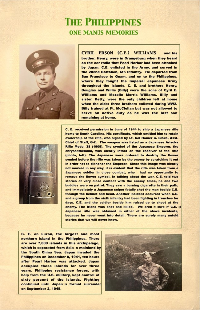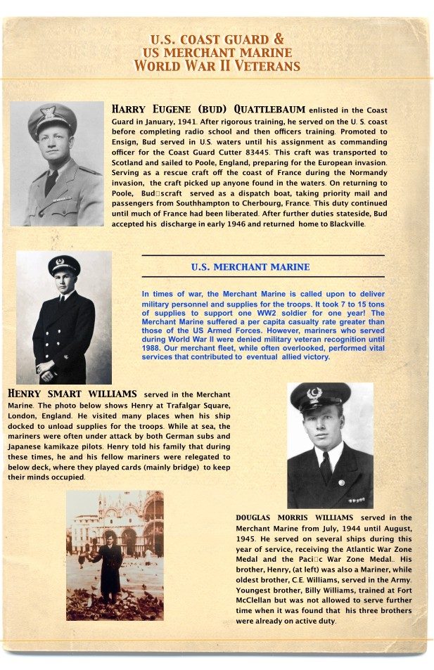 Family members graciously contributed information, photographs, and memorabilia for this special display. We regret any inadvertent omissions of local people who served during the war
